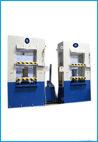 ''HYDRO' offers an advanced range of Flap Moulding Presses that uses compression Moulding process for manufacturing rubber flaps. These Flap Moulding Presses provide fast turnaround time with superior quality of end products. This results in increased productivity and significant cost saving. The unique design of these presses provides option for accommodating single set of Flap Mold as well as double set of molds in each Press. Two presses can be operated by single power pack unit with PLC. “HYDRO's Flap Moulding Presses are provided with Omron make PLC featuring Touch type colored display screen for Operator’s convenience. Molds for Flap Presses can also be supplied along with the presses.